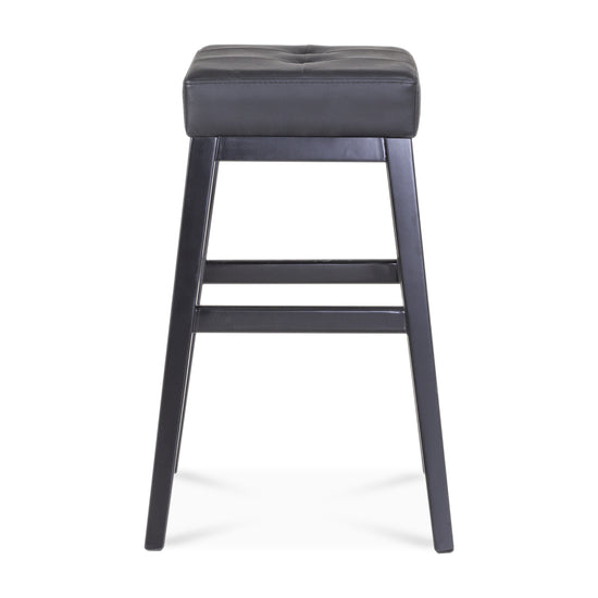 Silla elaborada en madera de roble color Negro, tapizado en tela tipo Eurocuero antipeladuras y antilíquidos de fácil limpieza, color Negro. Medidas: 75x48x46 cm.