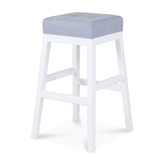 Silla elaborada en madera de roble color Blanco, tapizado en tela tipo Lino de alta durabilidad y suave al tacto, color Menta. Medidas: 75x48x46 cm.