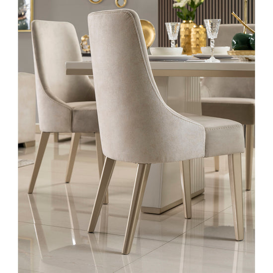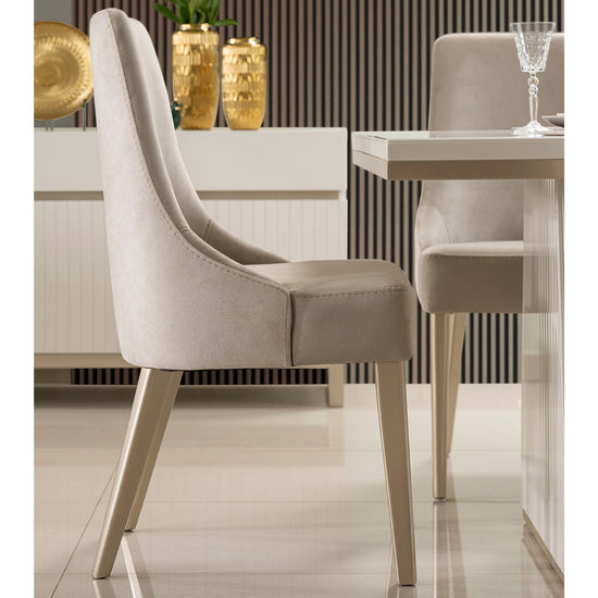 Silla comedor de diseño sofisticado y de una comodidad excepcional, tapizada en tela de alto lujo suave al tacto que le da un aspecto elegante y exclusivo. Es una excelente opción para aquellos que buscan un mueble que combine funcionalidad y estilo. Puede ser utilizada en cualquier comedor o sala de estar, ya que su diseño se adapta perfectamente a cualquier entorno.