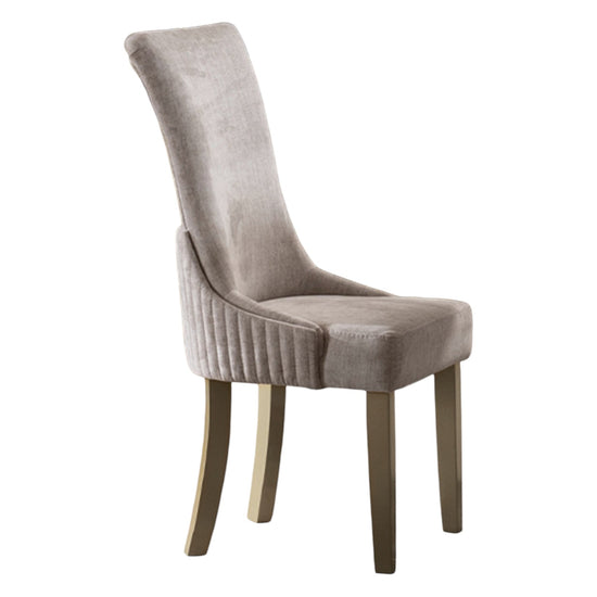La Silla Comedor Roma Velvet Marmol, Champaña cuenta con una estructura robusta fabricada en madera de roble, lo que garantiza su resistencia y una larga vida útil ante el uso diario. Está tapizada con telas de alta calidad y suaves al tacto, que ofrecen una sensación de lujo y confort para quienes la utilicen.
