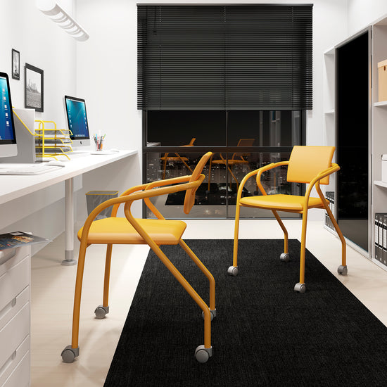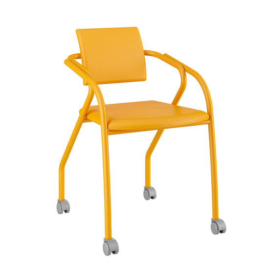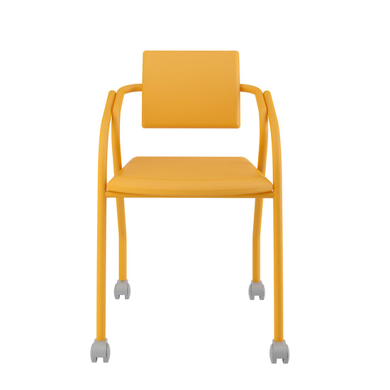 Silla elaborada en Metal, Espaldar en tablero de MDF de pino, relleno de espuma, tapizado en tela tipo eurocuero color Amarillo, patas metalicas con rodachines. Medidas: 86x51x55 cm. *Transporte y armado gratis.