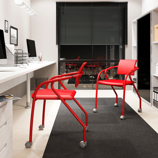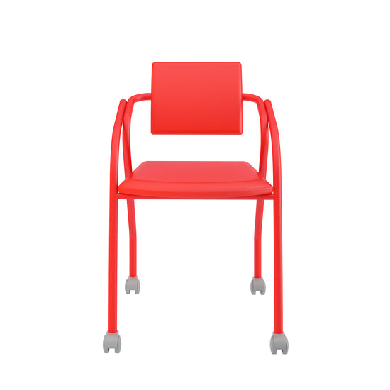 Silla elaborada en Metal, Espaldar en tablero de MDF de pino, relleno de espuma, tapizado en tela tipo eurocuero color Rojo, patas metalicas con rodachines. Medidas: 86x51x55 cm. *Transporte y armado gratis.