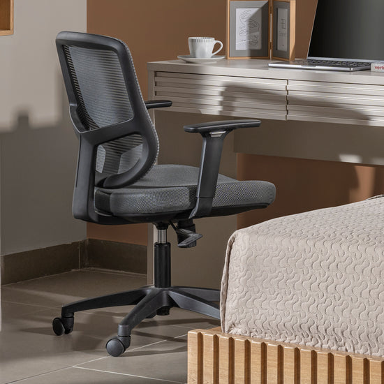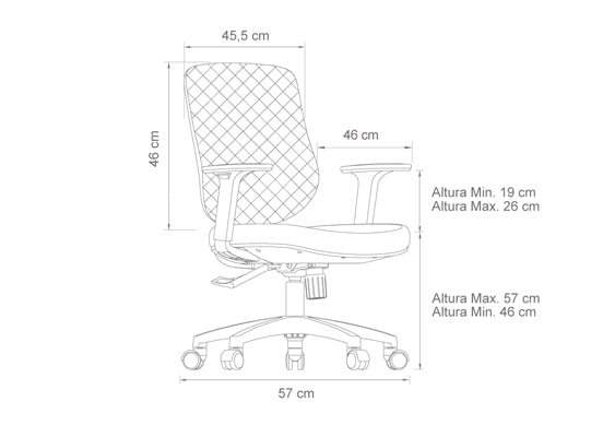 Silla giratoria operativa y ejecutiva. Gracias a su diseño y ergonomía permite largas horas de trabajo. Mecanismo: Basculante central, con bloqueo en 1 posición y regulación de tensión. Apoyabrazos: Graduables en altura. Asiento con espuma inyectada: Mayor durabilidad y menos deformación en el tiempo Asiento: Tapizado en tela con asiento interno en madera contrachapada. Espaldar: Malla en poliéster de alta elasticidad Garantía: 2 años contra defectos de fabricación y manufactura. Garantía de 1 año: Espaldar (Estructura o malla) Tapizado y espuma Cilindro a gas Garantía 6 meses: Rodachinas (sujeto a revisión del adecuado mantenimiento, uso y limpieza). Garantía 6 meses: los demás Mecanismos de apoyabrazos y brazos de estructura metálica