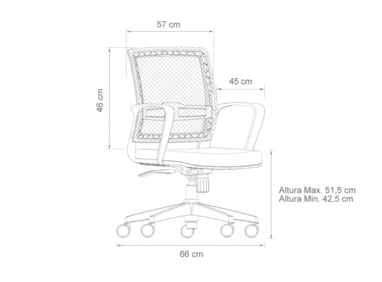 Silla giratoria con diseño moderno y ligero, ideal para espacios de trabajo. Su apoyo lumbar es ajustable a la medida del usuario. Mecanismo: Basculante central, con bloqueo en 1 posición y regulación de tensión. Apoyabrazos: Fijos Soporte Lumbar: Ajustable en altura Asiento con espuma inyectada: Mayor durabilidad y menos deformación en el tiempo, interno en madera laminada moldeada, externo en polipropileno Estructura espaldar: Polipropileno con refuerzo en fibra de vidrio Garantía: 2 años contra defectos de fabricación y manufactura. Garantía de 1 año: Espaldar (Estructura o malla) Tapizado y espuma Cilindro a gas Garantía 6 meses: Rodachinas (sujeto a revisión del adecuado mantenimiento, uso y limpieza). Garantía 6 meses: los demás Mecanismos de apoyabrazos y brazos de estructura metálica.