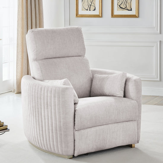 El Sillón Reclinable Minoti ofrece máximo confort con su tapizado en suave velvet color mármol y base en tono champaña. Su diseño contemporáneo con costuras verticales y cojines incluidos brinda elegancia y soporte ideal para descansar. Su sistema reclinable manual te permite ajustar la posición para leer, ver TV o relajarte con total estilo y bienestar en tu sala.