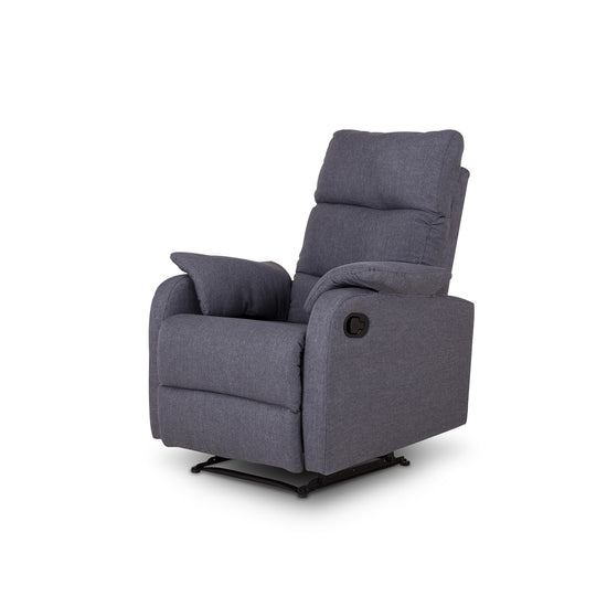 Convierte tu sala en un espacio de descanso con un sillón reclinable mecánico (palanca), de color Gris, relleno de algodón siliconado para mayor confort. La tela tipo Microfibra es agradable al sentido, y las espumas certificadas hacen que el sofá no se deforme. Medidas: 100X75X85 cm.