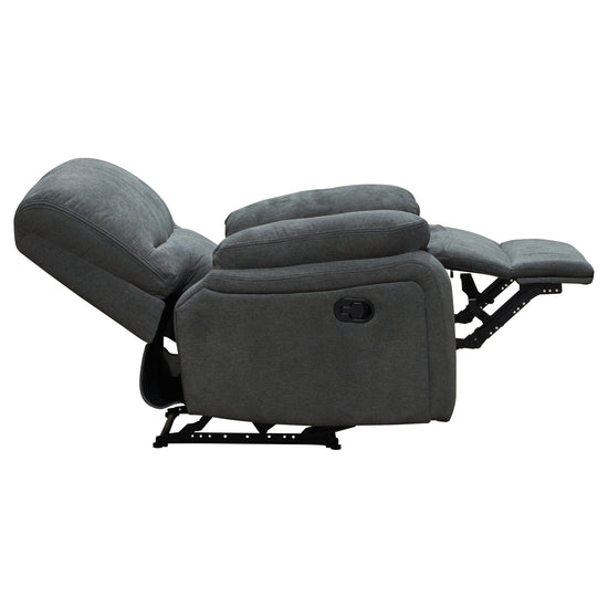 Relájate con estilo del sillón reclinable star de diseño moderno. Su tapizado suave en tela color gris humo y sus cojines acolchados brindan el máximo confort, mientras que su mecanismo de reclinación te permite ajustar la posición para disfrutar de momentos de descanso inigualables.