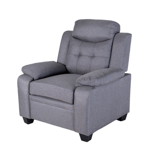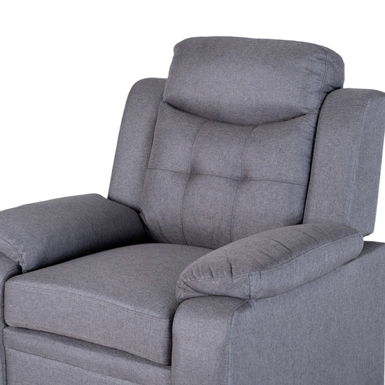 Ponte cómo en este sillón con sistema de reclinación tapizado en tela tipo lino de alta durabilidad y tacto suave en color gris. Incorpora espumas certificadas que mantienen su forma y una estructura robusta de madera, ideal para proporcionar comodidad y estilo para relajarte como mereces. perfecto para disfrutar en familia o relajarte después de un largo día.