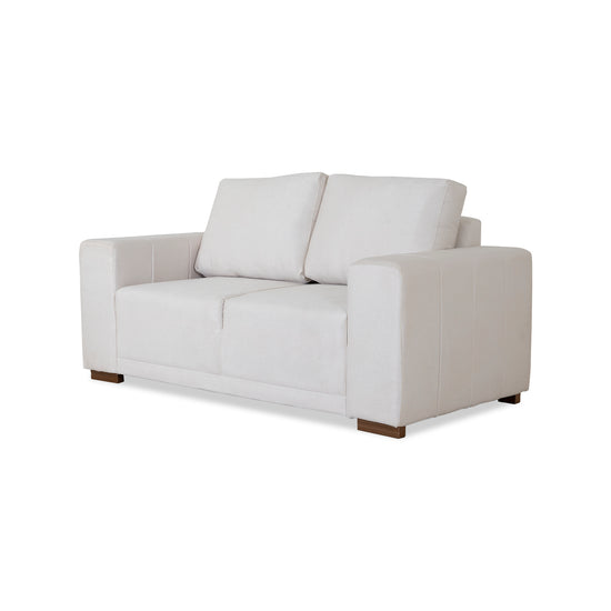 Sofá de estilo sobrio y elegante, tapizado en tela color CRUDO, ideal para generar ambientes tranquilos y sofisticados, sus patas en 100% roble en nuestro NUEVO color Bronce, cuenta con máximo confort en su asiento gracias a su tecnología de resortes POKET.