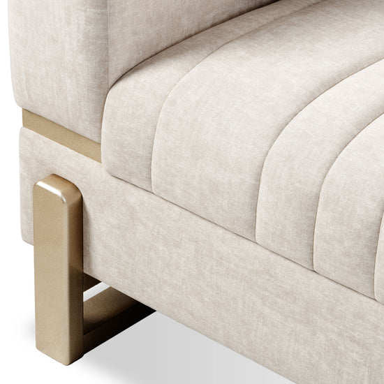 El Sofá Bonn destaca por su diseño elegante y envolvente, pensado para cautivar a primera vista. Su respaldo y asiento cuentan con un acolchado uniforme que aporta confort y armonía visual. Los brazos incorporan delicadas incrustaciones de madera, añadiendo un detalle distintivo y sofisticado al conjunto.