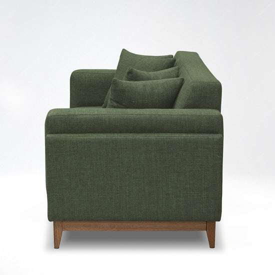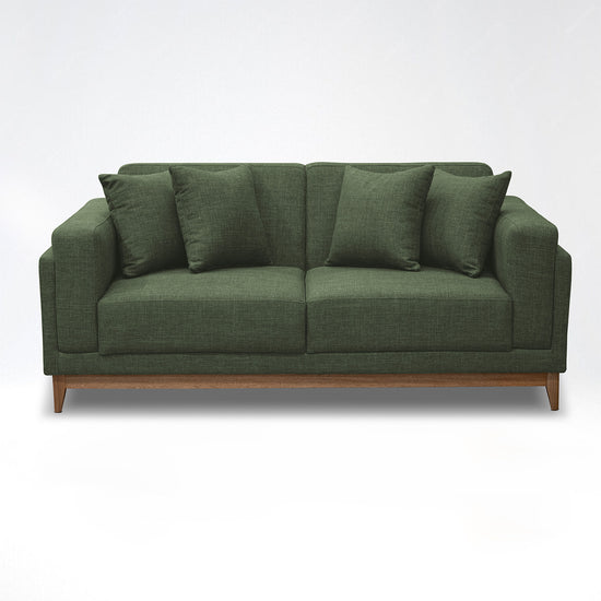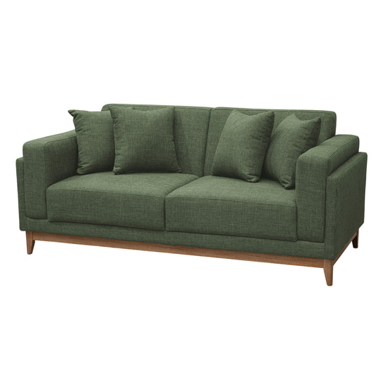 Este sofá 2 Puestos de diseño moderno y sofisticado es el complemento ideal para tu sala de estar. Tapizado en una tela suave al tacto, no solo destaca por su atractivo color verde oliva, sino también por ofrecer un alto confort al recostarte. Su diseño incluye cojines decorativos perfectamente coordinados, que no solo añaden un toque estético sino también funcionalidad al proporcionar mayor comodidad.