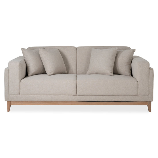 Eleva tu espacio con este elegante sofá, tapizado en tela suave al tacto para una experiencia de confort inigualable, ideal para espacios pequeños. Su sócalo de madera aporta un toque de elegancia y durabilidad. Transforma el ambiente con sus cojines decorativos que aportan elegancia y comodidad.