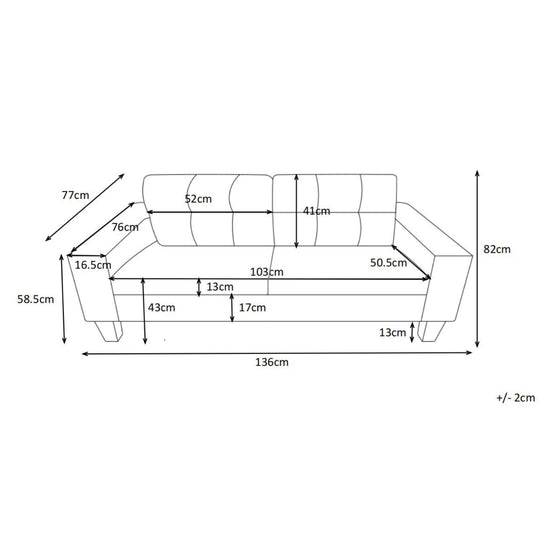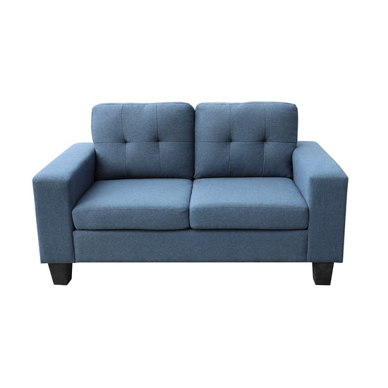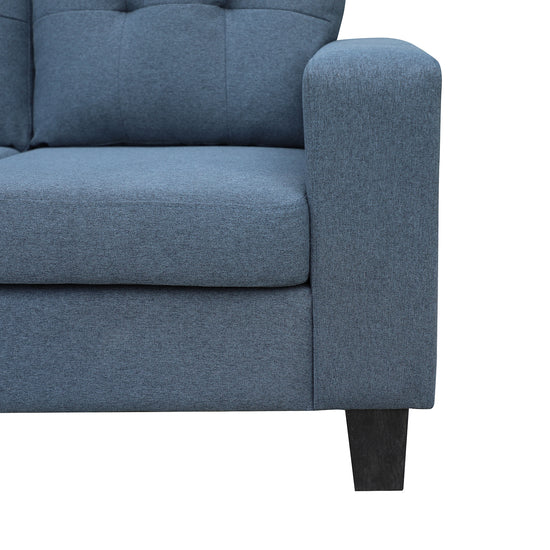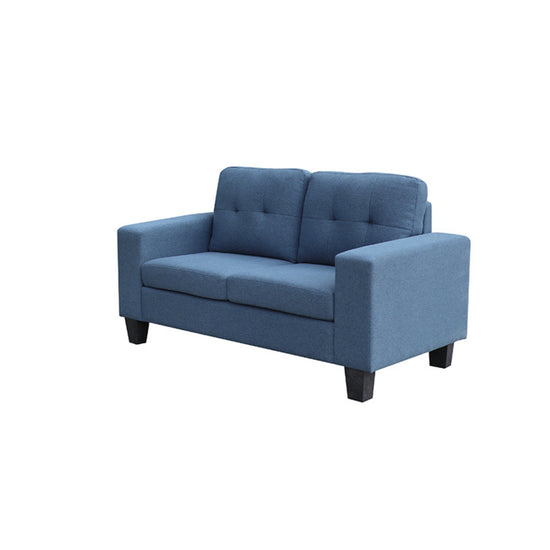 El sofá 2 puestos Diamante, Lino Azul, cuenta con un diseño con cojines capitoneados y líneas rectas combina elegancia y comodidad, ideal para realzar cualquier sala. La estructura sólida y los asientos acolchados ofrecen durabilidad y confort para el uso diario.