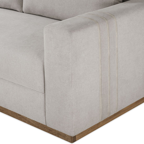 El Sofá Montana fusiona el estilo atemporal con detalles sofisticados, como el zócalo de madera de roble a la vista y las costuras bitono en los brazos que añaden un toque distintivo. Sus formas orgánicas y suaves crean una expresión ligera y relajante, brindando una estética cálida y reconfortante ideal para el hogar moderno.