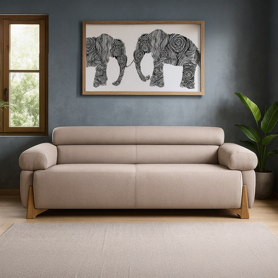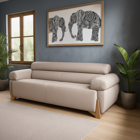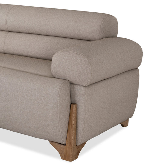 Sofá 3 Puestos Larisa: Elegancia y Confort en un Diseño Vanguardista. Redefine el concepto de comodidad y estilo con su diseño envolvente y sofisticado. Su tapizado en tela Eurolino de fácil limpieza facilita el mantenimiento diario, mientras que sus apoyabrazos y respaldo acolchados brindan el máximo confort. La estructura robusta, combinada con detalles en madera roble natural, le otorgan un toque cálido y elegante, perfecto para cualquier espacio moderno.