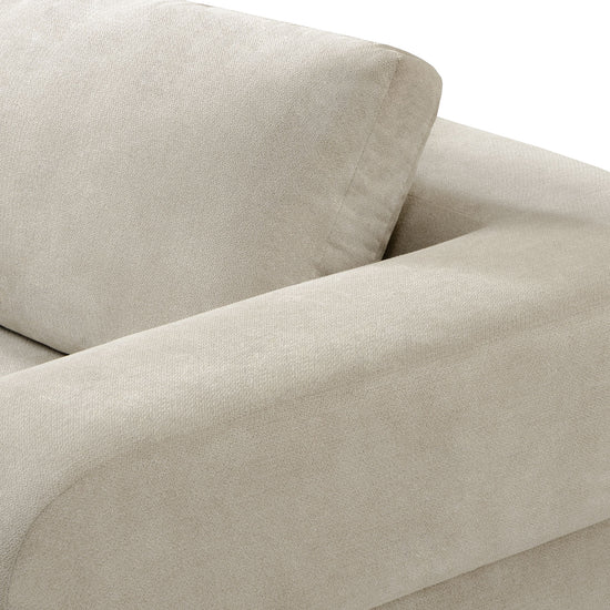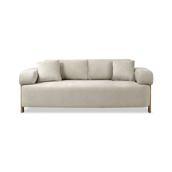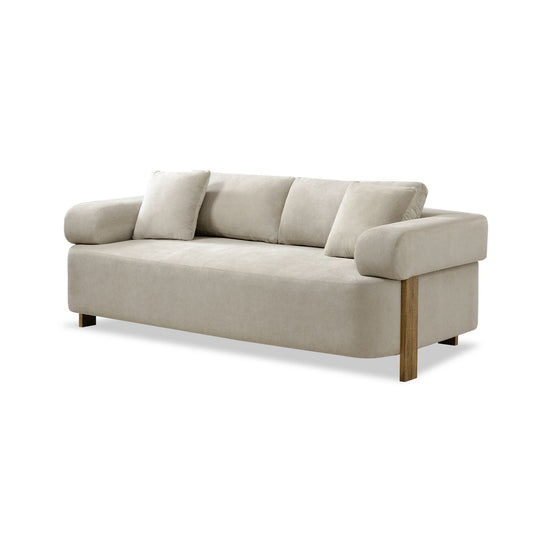 Sofá de diseño contemporáneo que se distingue por sus líneas limpias, estilo minimalista y alto nivel de confort. Tapizado en una tela tipo lino, ofrece una textura suave y agradable al tacto. Sus brazos anchos y redondeados no solo brindan mayor comodidad, sino que también aportan un toque moderno y envolvente al diseño.