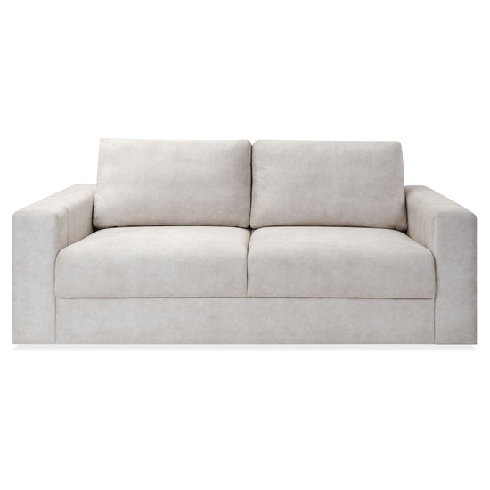 Sofá 3 puestos tapizado en tela suave al tacto combina elegancia y confort con un diseño atemporal. Detalle de las patas en madera añaden un toque sofisticado en los brazos, mientras que su construcción en madera roble y pino aseguran, durabilidad, con espumas de alta densidad, generan una comodidad excepcional.