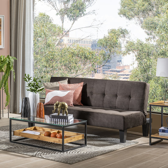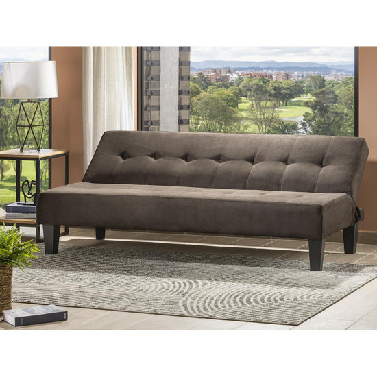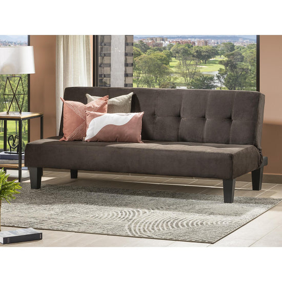Este sofá cama está tapizado en tela tipo microfibra de alta durabilidad y suave al tacto, con un elegante capitoné en cuadros en su respaldo. Su diseño funcional y único es ideal para cualquier hogar, incorporando un sistema click clack en su respaldo que permite convertirlo fácilmente de sofá a cama. Este sofá cama no solo ofrece comodidad y estilo, sino también una solución práctica para espacios reducidos. Sus líneas modernas y su estructura robusta garantizan una pieza duradera y versátil que realzará cualquier estancia. ¡Perfecto para recibir visitas o disfrutar de momentos de relajación!