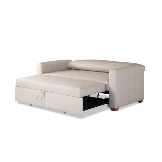 Comodidad y estilo en un solo mueble. El sofá cama Amatista se transforma fácilmente en cama, ideal para visitas o espacios multifuncionales. Tapizado en tela Eurolio de fácil limpieza, ofrece suavidad, resistencia y practicidad para el día a día.