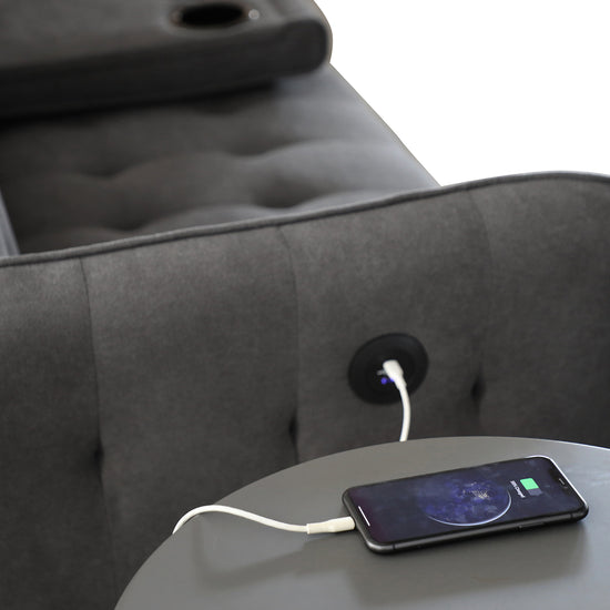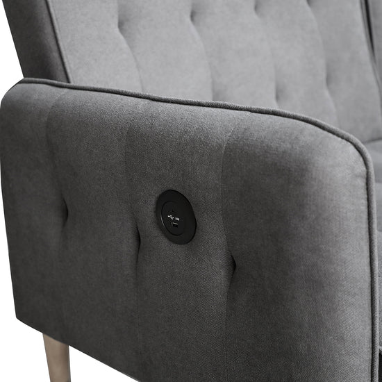 El Sofá Cama Arizona combina diseño moderno y practicidad. Tapizado en lino plomo, ofrece elegancia y suavidad al tacto. Su respaldo reclinable se convierte fácilmente en cama, incluye portavasos central y puerto USB para cargar tus dispositivos. Ideal para optimizar espacios con estilo, comodidad y funcionalidad.