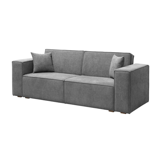 Diseño moderno y práctico. El sofá cama Cox está tapizado en resistente tela lino color plomo, ideal para el uso diario. Su sistema de apertura te permite convertirlo fácilmente en cama, ofreciendo funcionalidad sin perder estilo. Perfecto para optimizar espacios con elegancia
