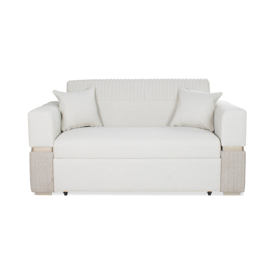El Sofá Cama Dhara Eurolino Blanco Puro, Champaña 175 cm combina funcionalidad y estilo en un diseño compacto y elegante. Con sistema click clack en su espalda, se convierte rápidamente en cama para ofrecer mayor comodidad. Su tapizado en Eurolino, conocido por su resistencia al desgaste, es antilíquidos y no permite que las fibras se adhieran, asegurando facilidad de mantenimiento y longevidad. Perfecto para quienes necesitan un sofá cama versátil y duradero en espacios pequeños.