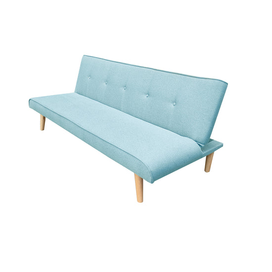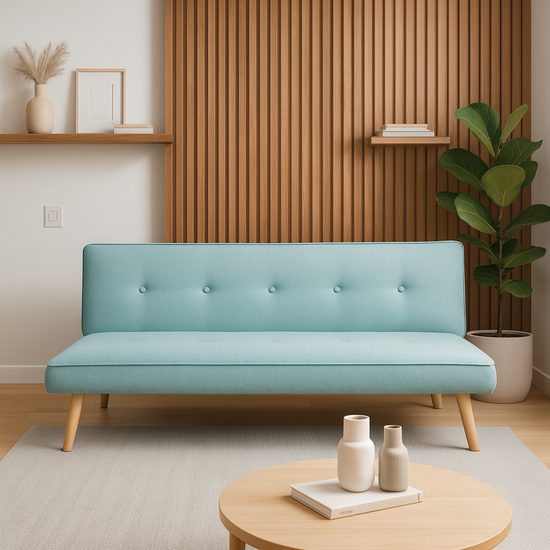 El Sofá Cama Gabi Turqiesa aporta frescura y estilo escandinavo a cualquier espacio. Su diseño limpio, patas en madera natural y sistema click clack lo hacen perfecto para hogares modernos. Este sofá cama turquesa es ideal para transformar tu sala en un espacio práctico y con estilo en Colombia