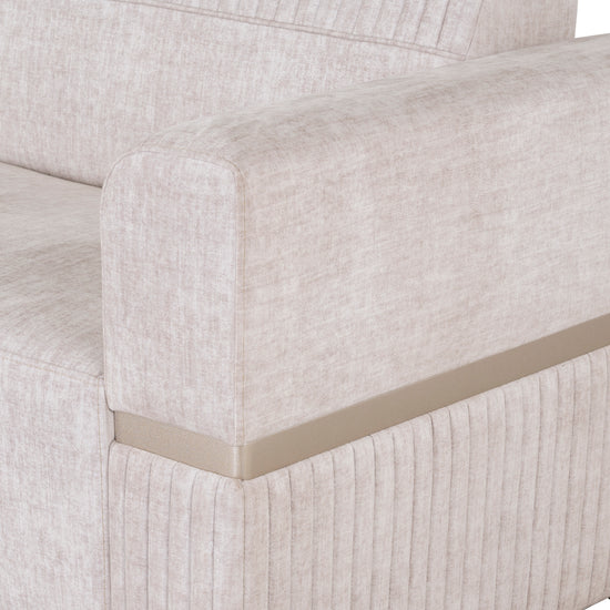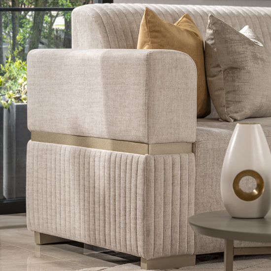 Renueva tu espacio con la máxima elegancia gracias a nuestro Sofá en L Dhara de 3 piezas. Este sofá cuenta con un brazo desmontable que facilita su transporte. Su tapizado en tela tono Mármol es suave al tacto y brinda una sensación de frescura. Todo esto se combina con un diseño espacioso y moderno que elevará el estilo de tu hogar a nuevos niveles de sofisticación y confort.