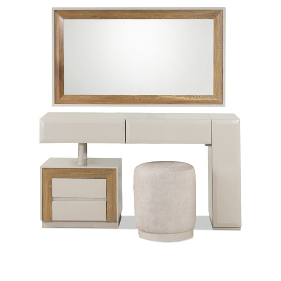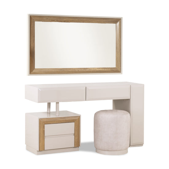 Experimenta la elegancia y funcionalidad con nuestro Tocador Barret Natural en tono Off White. Este tocador, versátil como escritorio, cuenta con un marco espejo de doble uso, ya sea vertical u horizontal. Sus gavetas funcionales te brindan organización a la par de un diseño encantador, asegurándote tener todo a mano. Dale un toque de estilo y practicidad a tu espacio con este tocador único.