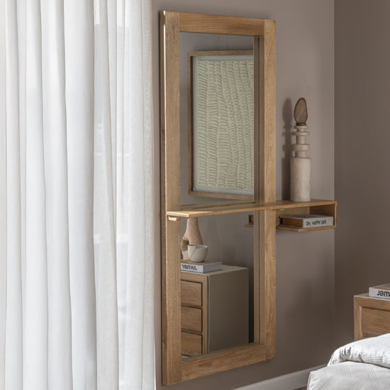 El Tocador Mila es la combinación perfecta entre elegancia y practicidad. Su estructura en madera roble aportando un estilo cálido y resistencia. Su diseño minimalista incluye una repisa integrada, ideal para colocar tus accesorios, perfumes o artículos de uso diario, manteniéndolos siempre a la mano.