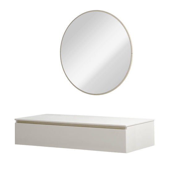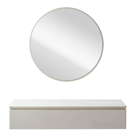 Optimiza y embellece tu habitación con este elegante tocador flotante en color greige. Diseñado para colocarse en cualquier parte de tu espacio, este tocador ofrece una solución práctica y moderna para tu rutina diaria. Ideal para quienes buscan funcionalidad y estilo en su hogar, este tocador es una adición versátil y sofisticada