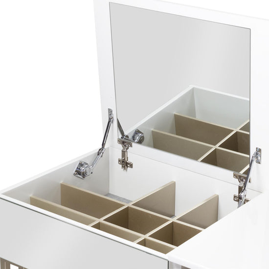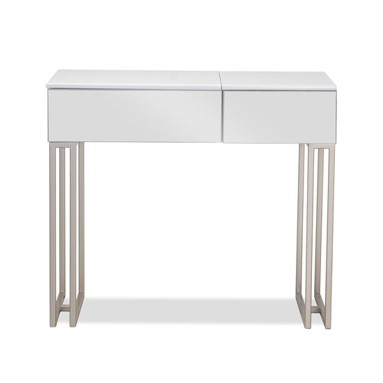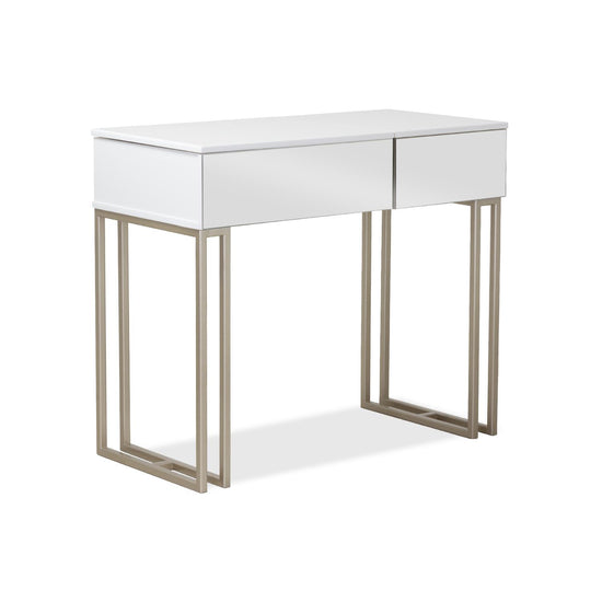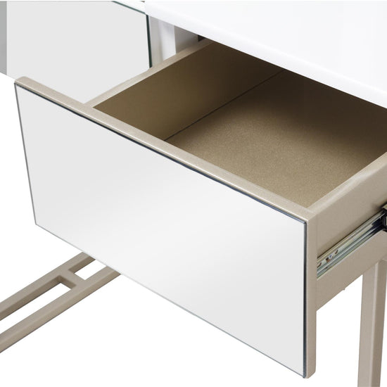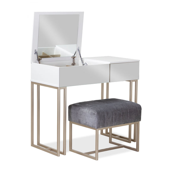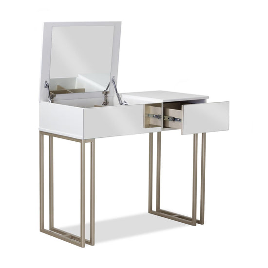 Tocador moderno tipo escritorio con espejo interno en la cubierta y gavetas laterales que te permiten almacenar tus pertenencias, facilitan las tareas del maquillaje diario y tener todo siempre a tu alcance.