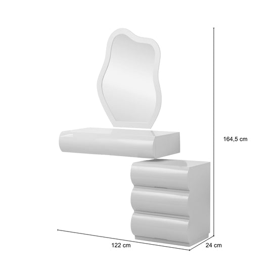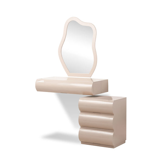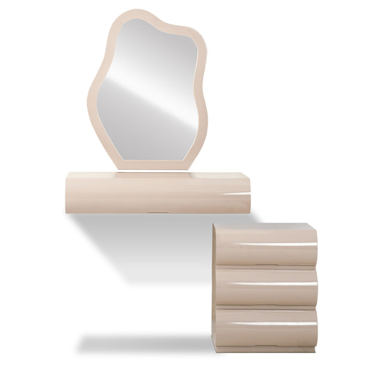 El Tocador Sienna es una pieza imponente que combina diseño cultural y funcionalidad. Su espejo de forma orgánica aporta fluidez visual, mientras que su estructura atrevida de curvas envolventes añade carácter y sofisticación al espacio. Cuenta con un módulo principal con dos gavetas y organizadores que facilitan el orden diario, y un módulo lateral de tres gavetas que amplía el almacenamiento. Su diseño volumétrico y acabados refinados lo convierten en el complemento ideal para tu habitación.