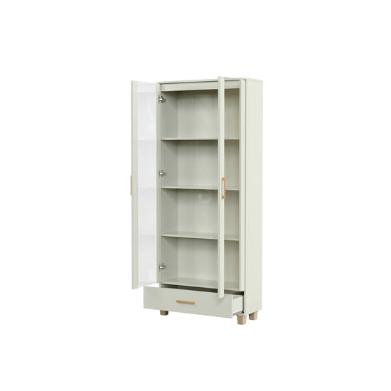 Vitrina elaborado en madera industrializada de pino MDF y acabado en pintura UV que garantiza su durabilidad y resistencia. Cuenta con 1 gaveta y 4 repisas. Con un diseño moderno esta vitrina añade un toque de sofisticación a cualquier espacio. Organiza y muestra tus colecciones con estilo. Transporte y Armado Gratis